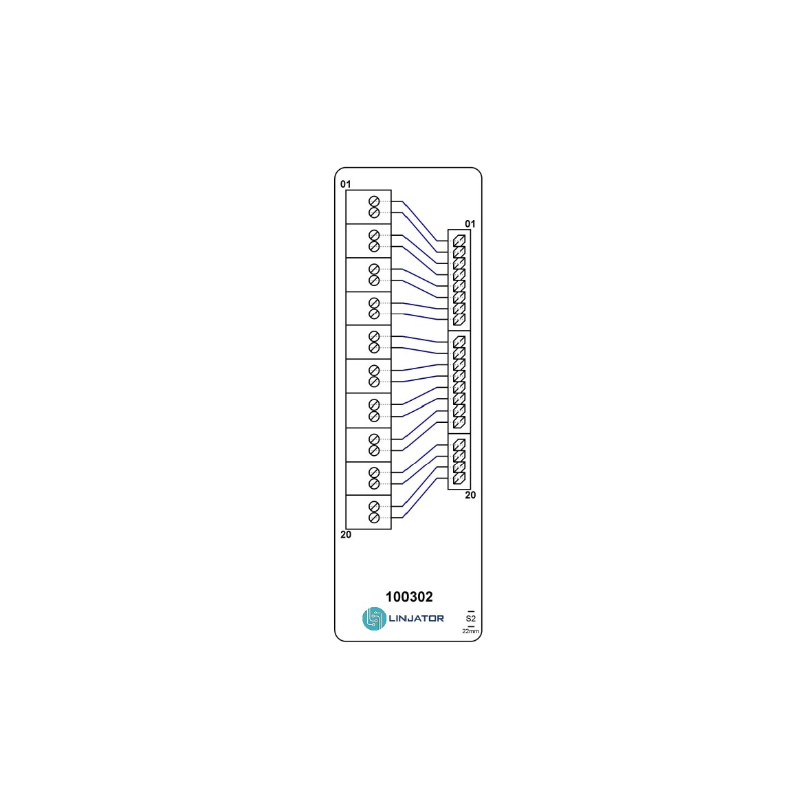 Kopplingsplint 20-pol till 20-pol med genomgående koppling.